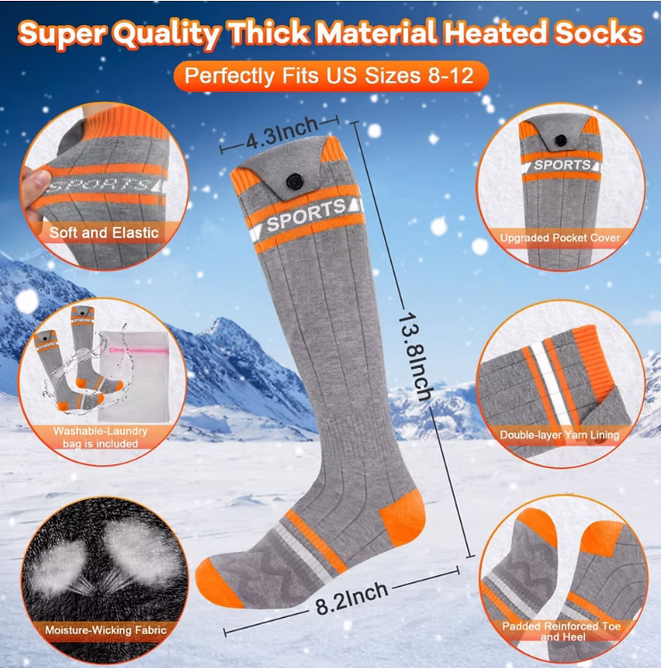 Ideal for winter activities, these washable heated socks not only keep your feet warm