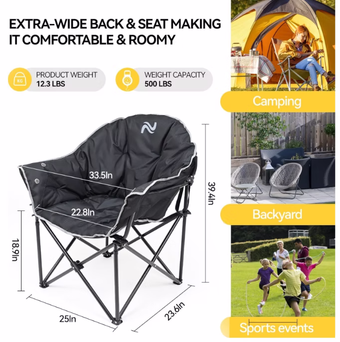 positions. Built with durability in mind, this heavy-duty camping chair supports up